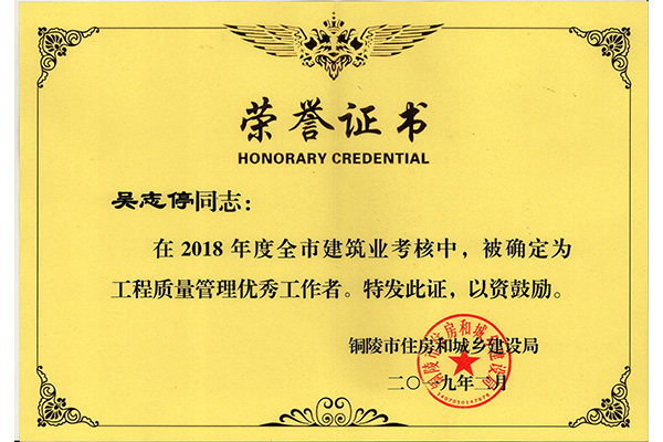 吴志歇工程质量优异事情治理者