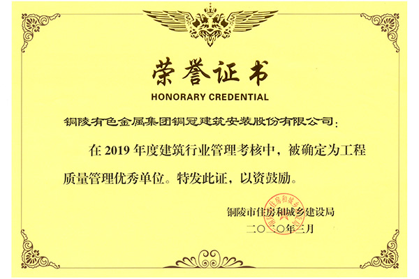 工程质量治理优异单位